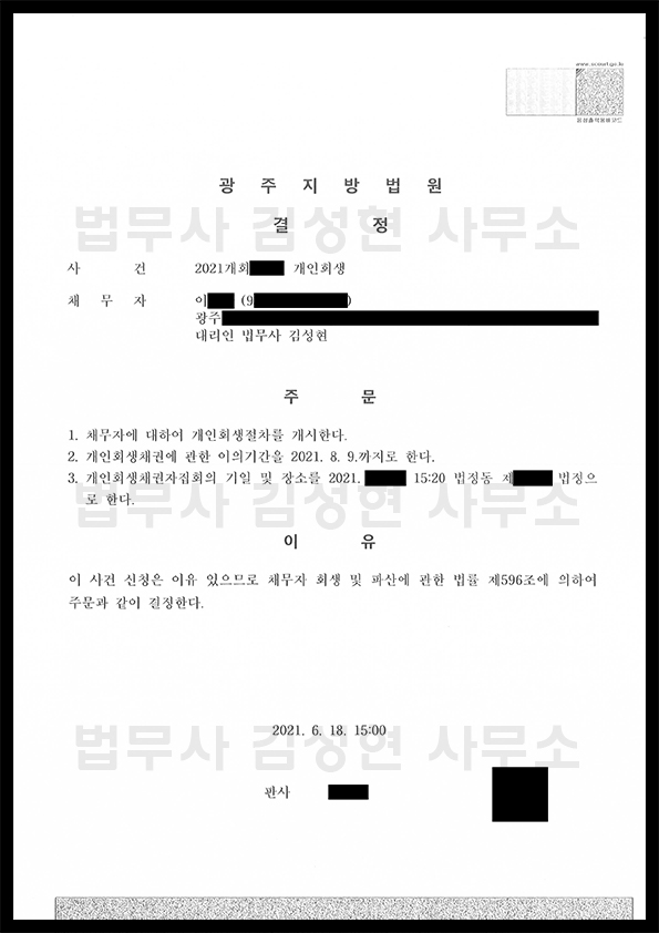 Á¦¸ñ [±¤ÁÖ °³ÀÎȸ»ý] °³½Ã°áÁ¤